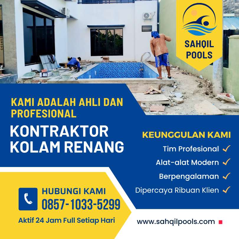 Ingin membangun kolam renang impian Anda? Tak perlu khawatir! Sahqil Pools hadir sebagai solusi profesional kontraktor kolam renang. Dengan biaya terjangkau, kami menawarkan layanan desain, pembangunan, hingga perawatan kolam renang yang cepat dan efisien di seluruh wilayah Jakarta dan sekitarnya. Percayakan pada ahli, percayakan pada Sahqil Pools!